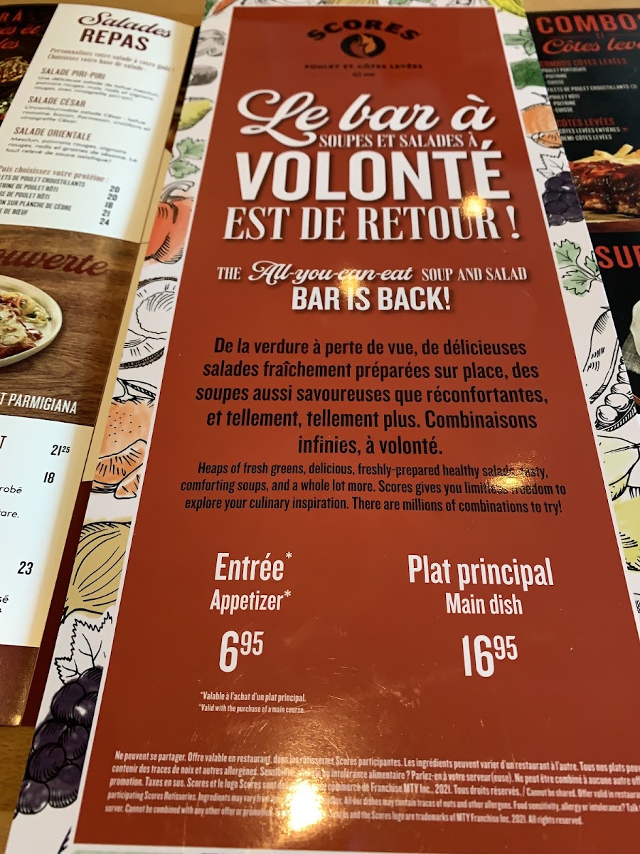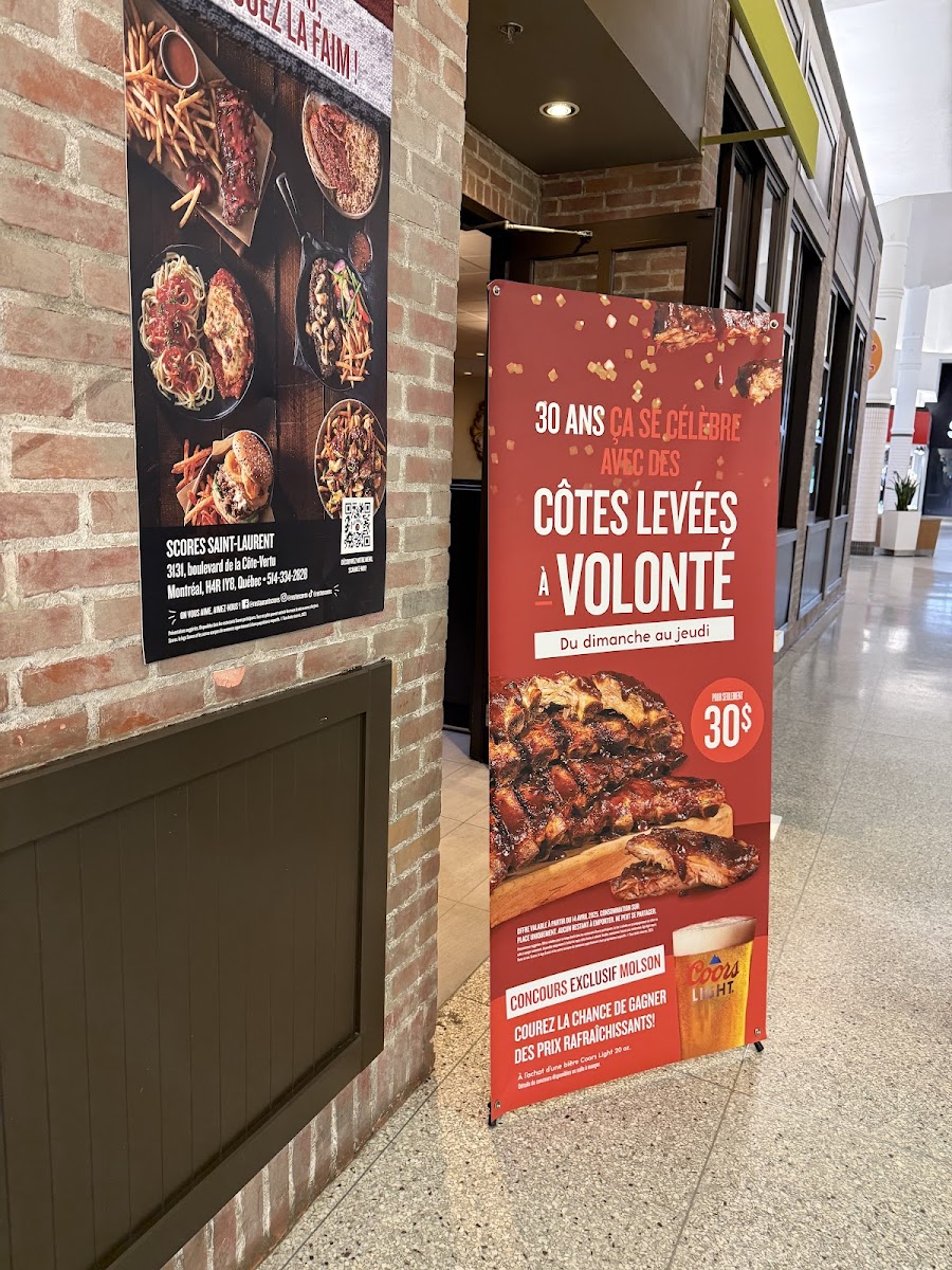 Welcome to Restaurant Scores - Montreal, where culinary delights await at 3131 Boulevard Cote Vertu Ouest. Here, the menu shines with its celebrated meal-sized salads, showcasing the iconic Piripiri Salad topped with succulent chicken, vibrant greens, and a burst of piripiri flavor, making it a must-try at CA$18.00 to CA$20.00.